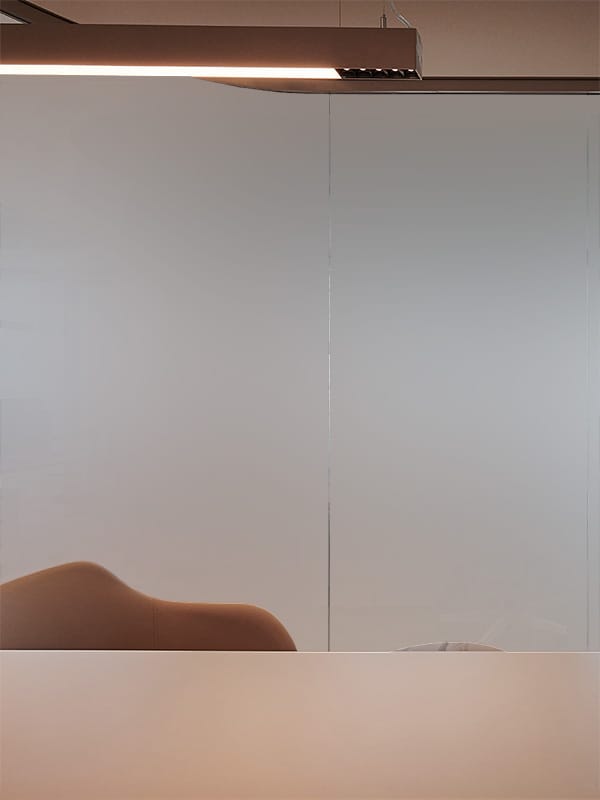 Conference rooms are the most common application we see. Glass-walled meeting rooms are a design staple in modern offices but they create an immediate privacy problem. Film solves it without frosting the glass permanently. One switch and the room is private. Another and it’s open again. For businesses that use their conference rooms for sensitive conversations, client presentations, or anything they’d rather not broadcast to the open office, it’s a practical solution that looks intentional rather than like an afterthought.